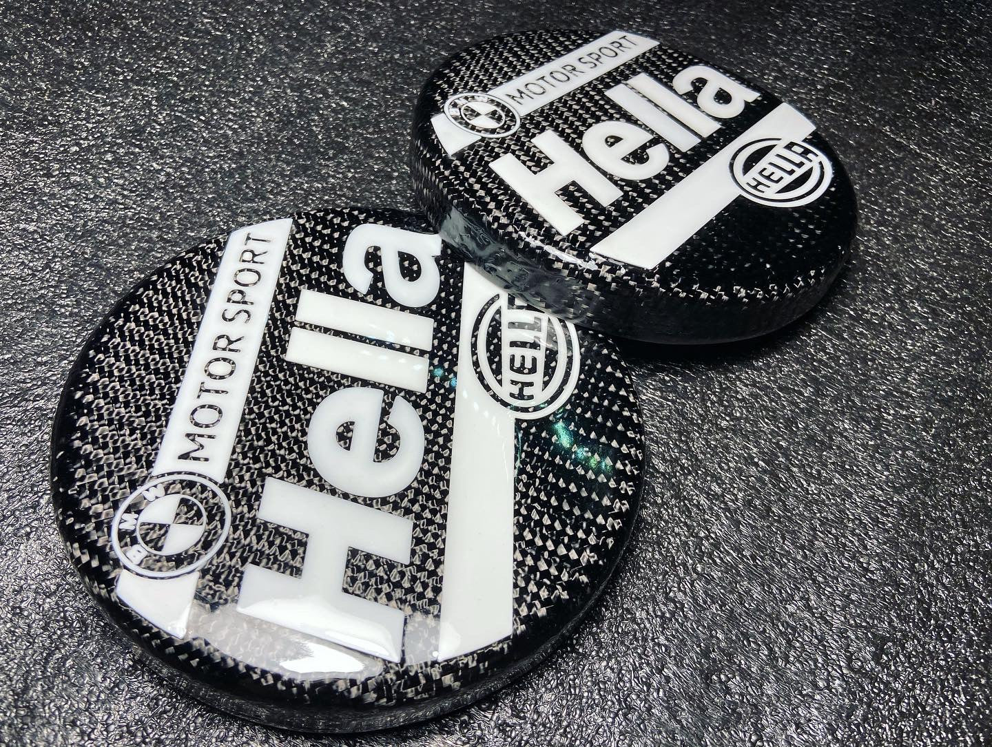 x2 BMW MotorSport by Hella HeadLight Covers Carbon Fiber E28 E30 E34 M3